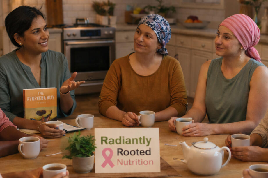 Kiran Bissoon is an Ayurvedic Cancer Nutritionist and Joy-Health Coach whose work integrates evidence-informed anti-inflammatory nutrition principles with Ayurvedic daily rhythm practices to support individuals navigating cancer and chronic illness.